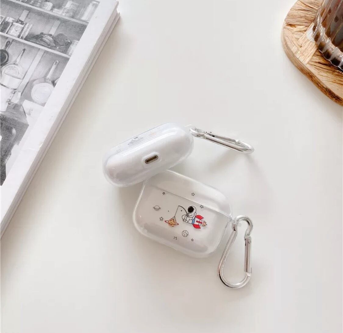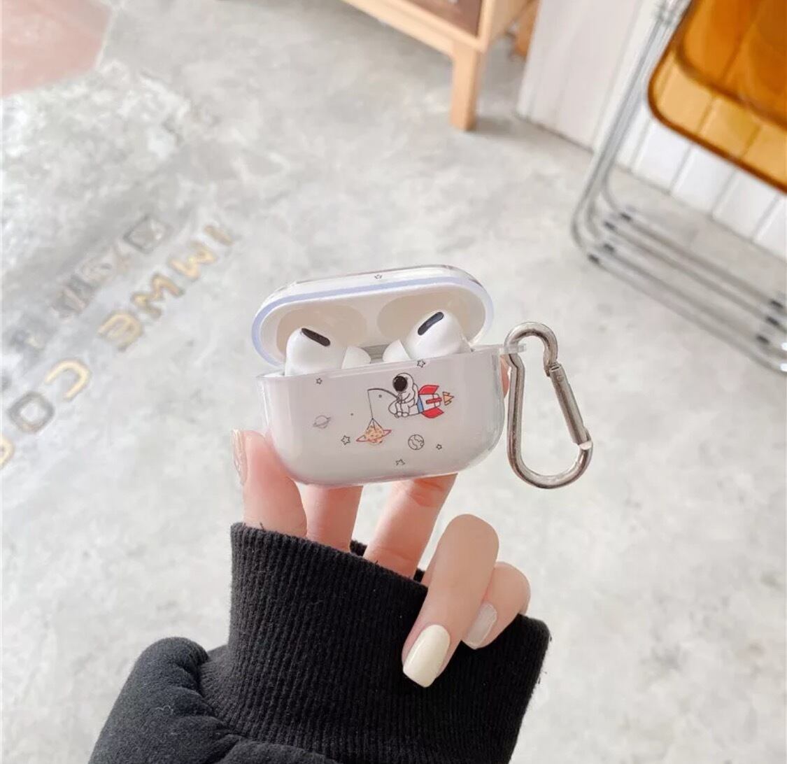 可愛い宇宙飛行士さんがロケットに乗って宇宙を釣ってる絵が付いたケースです!